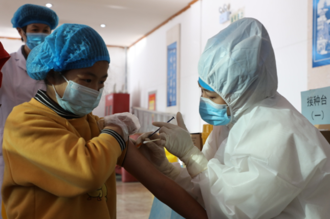 为有效预防新冠肺炎疫情,二团对辖区内7-11岁人群接种新冠疫苗,共筑免疫长城,确实保障人民的生命安全。