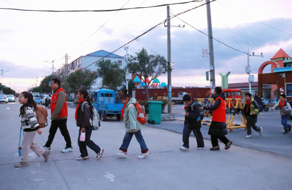 下午5点的千秋小学门口,温情涌动。“小朋友,慢点,阿姨牵你过马路。”“射阳河小水滴”志愿者杨玲弯下腰,牵起一年级学生小明的手,并举牌示意车辆减速。不远处,几位家长志愿者正引导电动车辆有序停放——这是“小手牵大手”护学行动的日常一景。千秋镇整合学校、社区、家长等多方力量,常态化开展护学志愿服务,不仅筑起了校园周边的安全屏障,更在孩子心中播下了文明的种子,在家长眼中传递着互助的温度,推动形成了“人人参与、共建共享”的文明育人新格局。