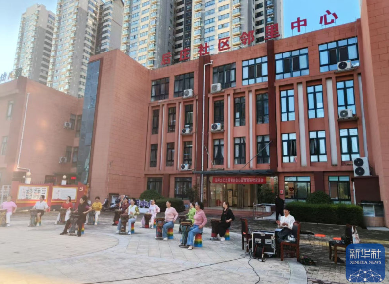 下午五点,锦屏镇后庄社区邻里中心广场上,十几名表演者随着音乐节奏击打着非洲鼓,孩童笑语与乐声交融。大厅内,传统的办公室格局已被开放式办公桌取代,工作人员与居民对坐交流,事务几分钟即可办结。