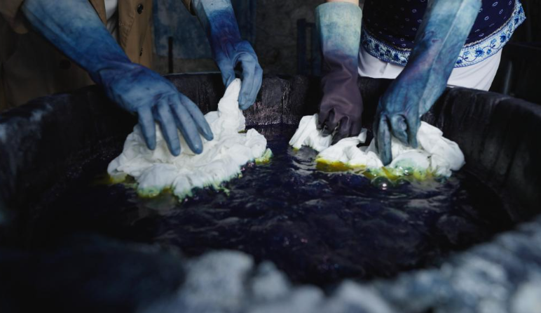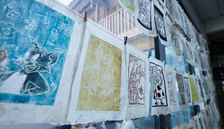 甲马以刀为笔,镌刻古老祈愿;扎染则以线为缚,在棉布上染出诗意。在匠志集的百工馆里,陈列的一件件扎染制品吸引着众多游客驻足。