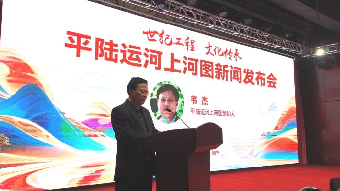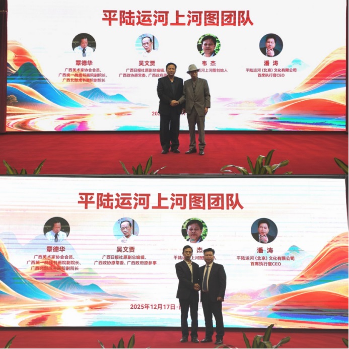 在会后接受记者采访时,河池市金城江区文化广电和旅游局常务副局长陈小山表示,《平陆运河上河图》是新时代运河文化的史诗性重构,确立了数字时代文化艺术产品,用讲述故事线构成运河人文基因。画家以像素为橹、代码为帆,让沉睡的运河文明在数字星河中重生。同时也希望《平陆运河上河图》能够成为重要的文化载体,不仅带动广西区域文化发展,更能辐射东南亚地区,进一步推动文化艺术事业的繁荣与进步。