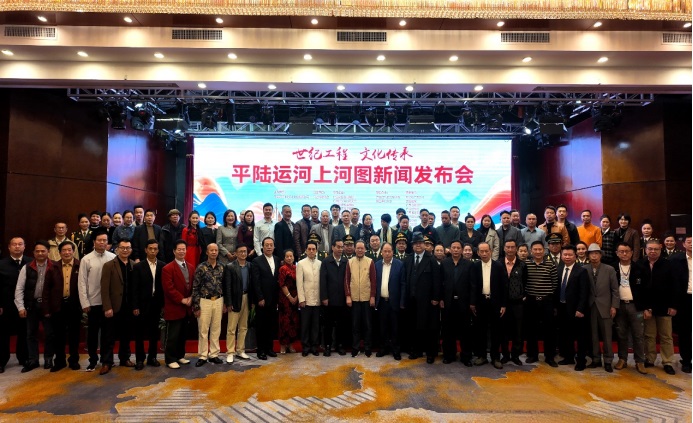 本网讯(潘超平 刘清永)12月17日,记者在南宁由平陆运河(北京)文化有限公司举行的新闻发布会获悉,一幅描绘新时代国家战略工程——平陆运河的巨幅艺术长卷《平陆运河上河图》,正式获得中华人民共和国国家版权局颁发的作品登记证书。这幅传承发扬当年《清明上河图》艺韵的鸿篇巨制,以独特的艺术语言,将一项关乎区域发展的重大工程升华为承载民族复兴梦想,展现文明互鉴精神的文化符号,引发文化艺术界与学术界的广泛关注。广西壮族自治区党委原副书记潘崎、自治区政府原常务副主席黄道伟等相关领导嘉宾、书画艺术家、企业界人士、新闻媒体朋友出席发布会。