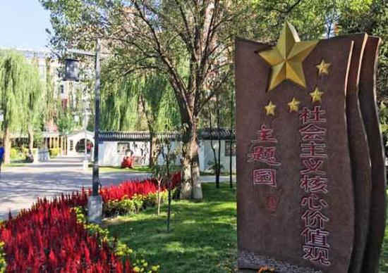 9月22日,记者来到位于人民公园北部的社会主义核心价值观主题园。园内景色宜人,雕刻着社会主义核心价值观的主题墙、扇面长廊等景观各具特色,人工湖和绿茵相得益彰,虽然主题园建成不久,已有市民驻足观赏。市民李莉告诉记者,核心价值观主题园对下一代的教育很有意义,环境也很好,市民休闲健身又多了一个好去处。