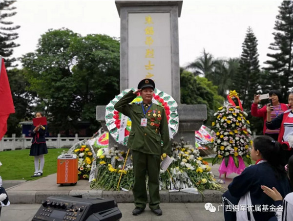 该基金会理事长梁力国表示“弘扬爱国主义、传承红色基因”是广西拥军优属基金会的重点工作。在清明节前夕,玉林市、桂林市、贵港市、北海市四地办事处邀请当地参战老兵、抗美援朝老英雄,联合当地小学组织小学生到烈士陵园拜祭烈士、缅怀英灵,接受革命英雄主义教育。北海市抗美援朝老英雄王辛佑老先生、玉林籍对越自卫还击参战老兵陈基志老战士在扫墓活动上讲述了他们的战斗事迹。